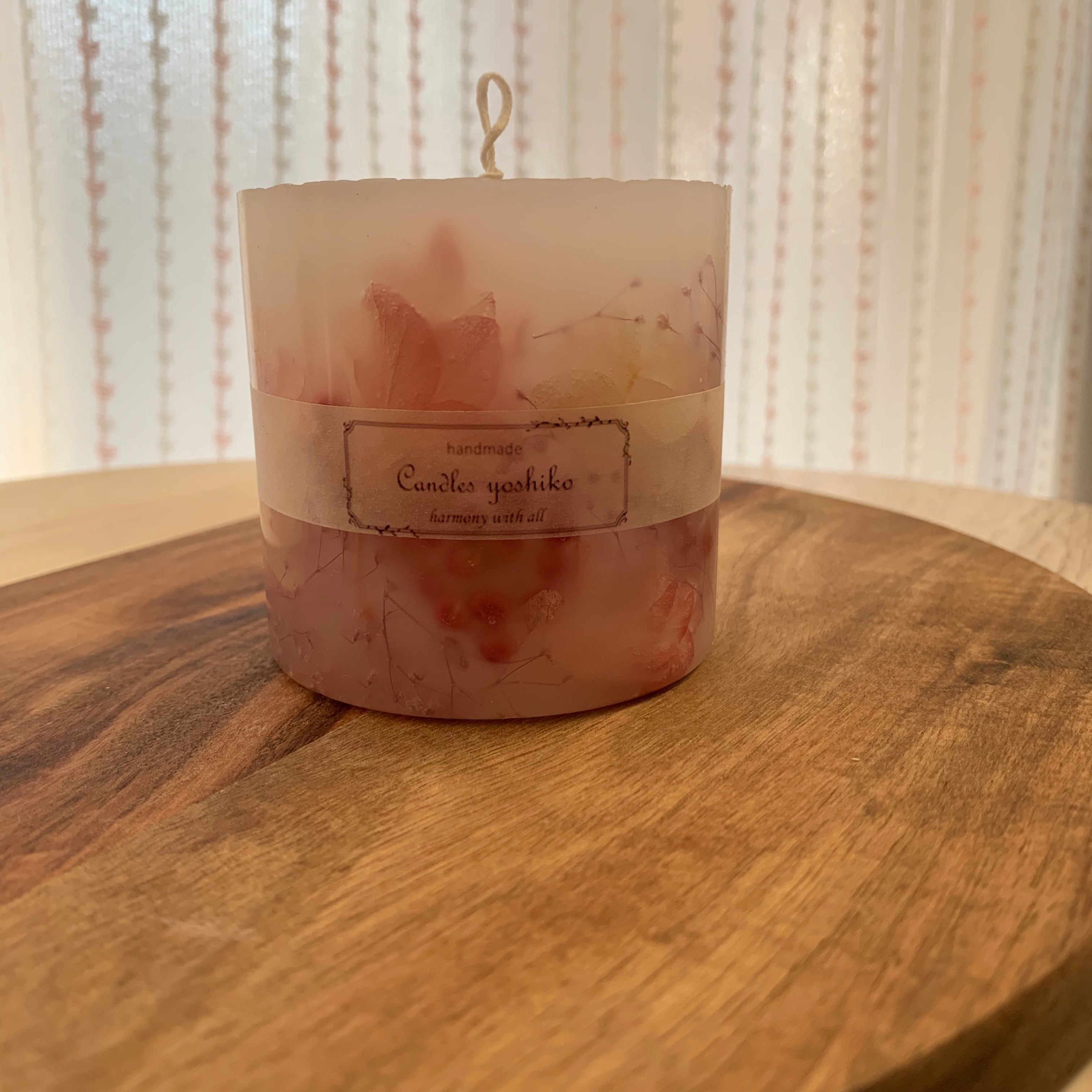 ピンク系のお花やペッパーベリーをきれいに形が出るように詰めました。高さ7cm,直径7cmほどの大きさです。